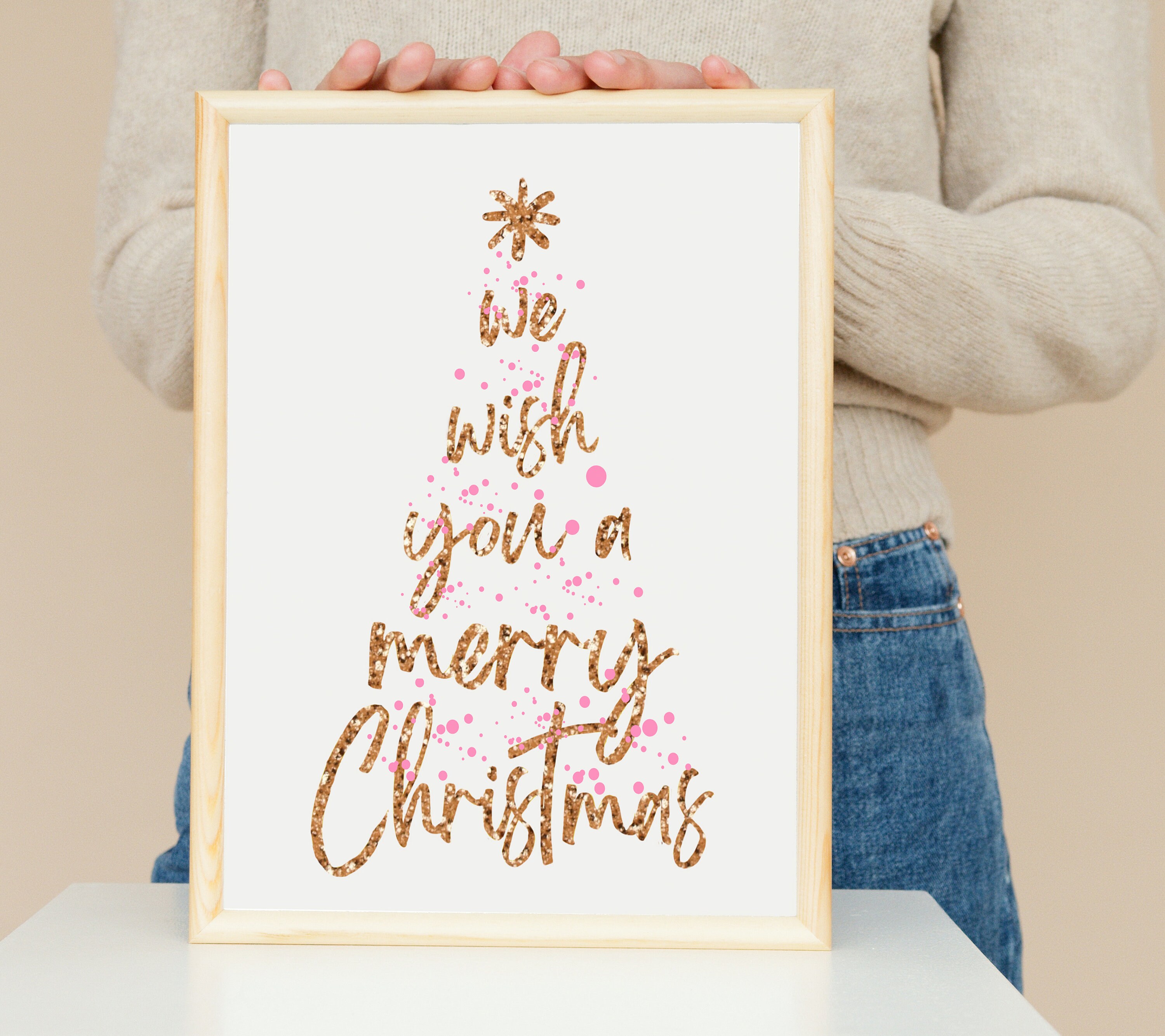 Buy Pink Christmas Print and Gold Christmas Print Holiday Art